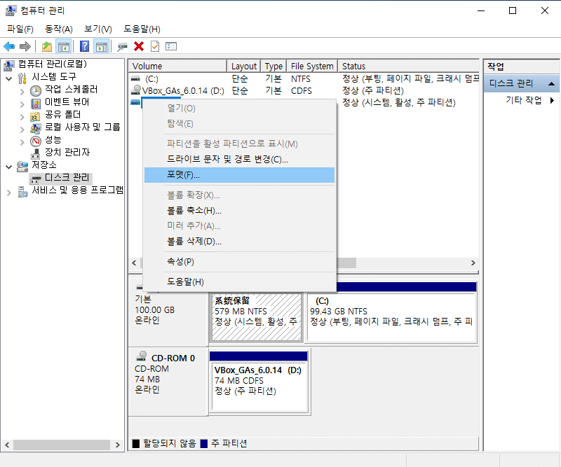 ● 볼륨에 인식된 파일 시스템이 포함되어 있지 않음.