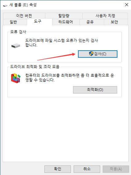 2 단계: 도구 페이지로 이동한 다음 오류 검사 섹션에서 "검사"을 클릭하십시오.